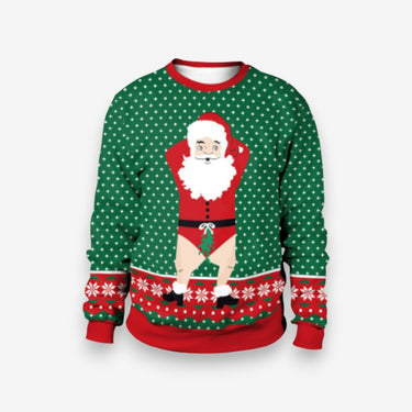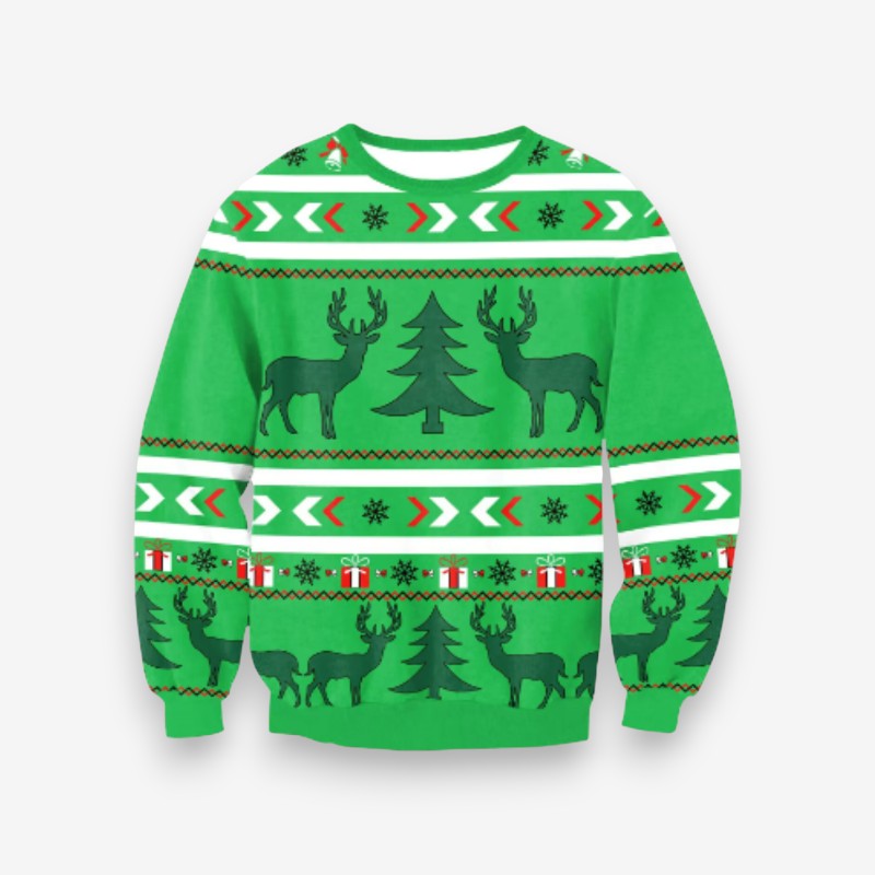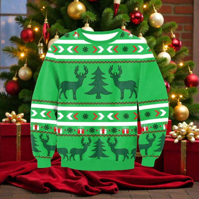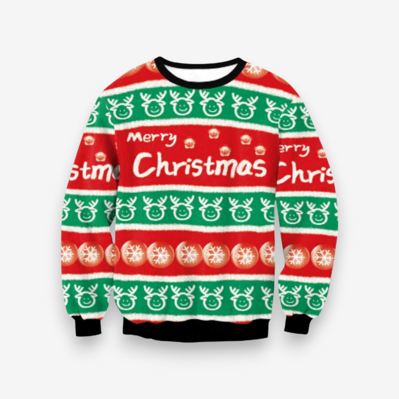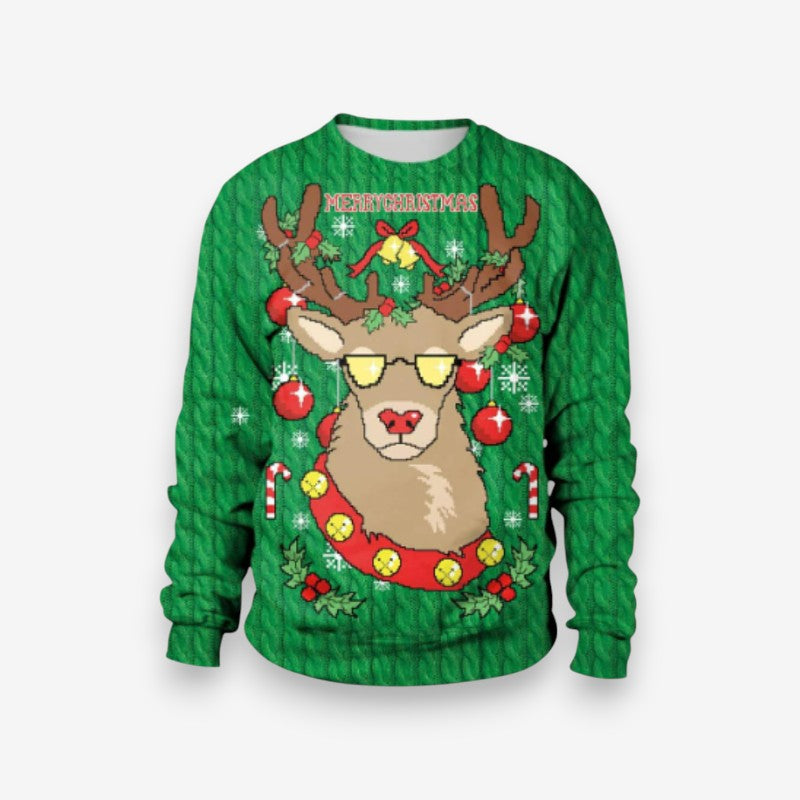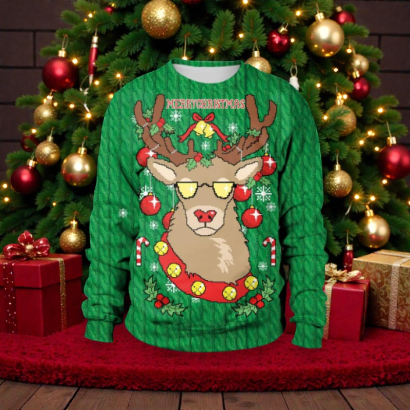 Ce pull de Noël en maille oversize présente un col rond et des manches longues, offrant une coupe confortable pour les rassemblements festifs. Son design simple permet de l’associer facilement à diverses tenues saisonnières.