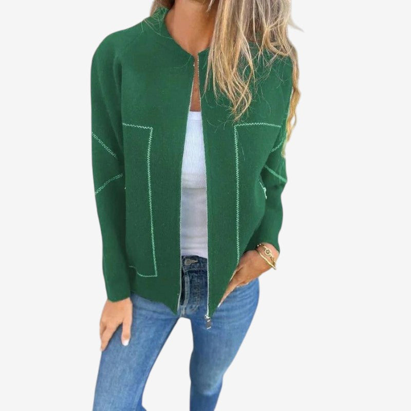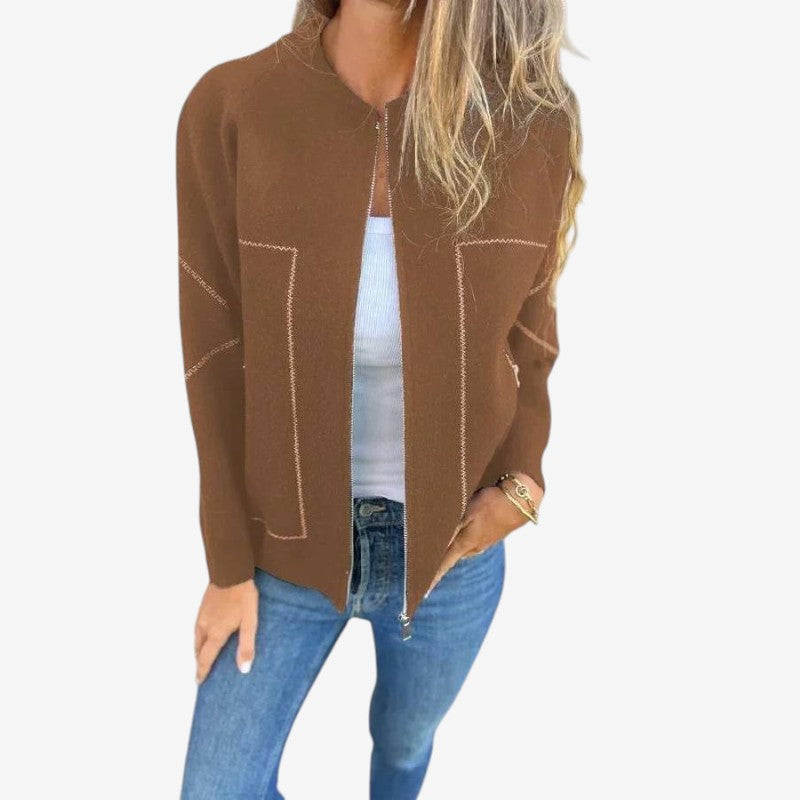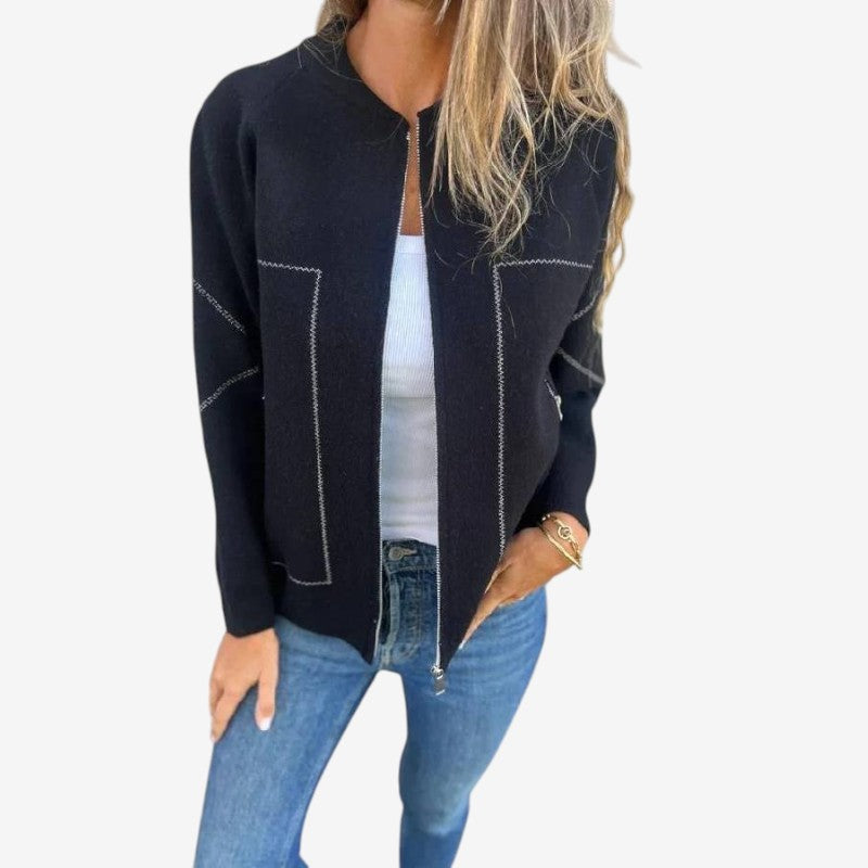 Isabella – Veste zippée à manches longues, coupe ample avec col rond