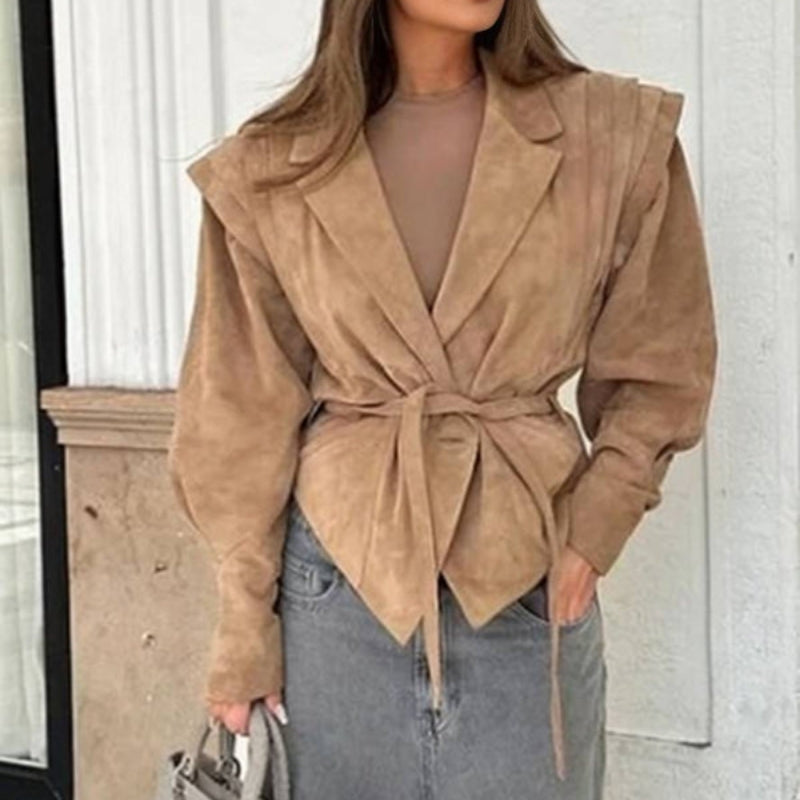 Jeanne – Veste à manches longues avec col à revers et ceinture ajustable