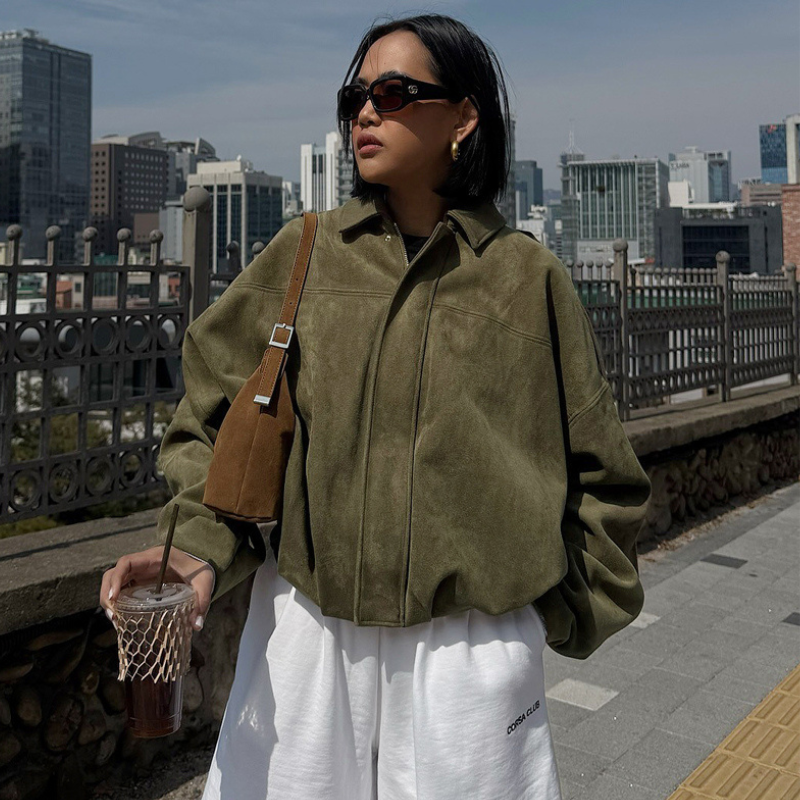 Cette veste oversize présente des manches longues et un col classique, offrant un style moderne et détendu, idéal pour superposer ou pour des sorties décontractées. Sa structure en tout en conservant un aspect soigné.