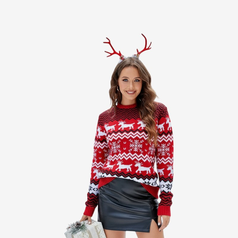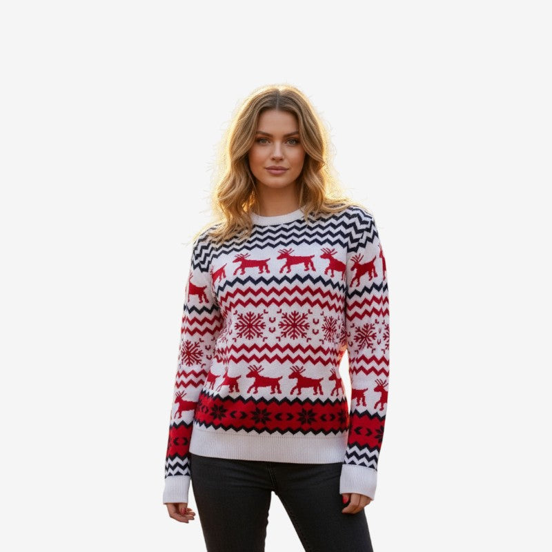Pamela – Pull de Noël à manches longues col rond et coupe slim