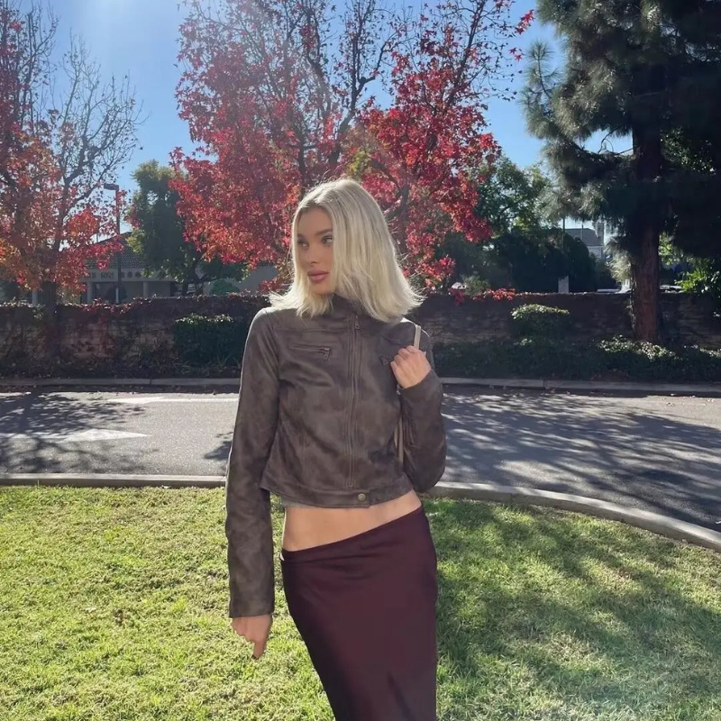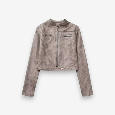 Cette veste présente des manches longues et un col rond. Elle dispose d’une fermeture zippée à l’avant et d’un ourlet droit sur le bas.
