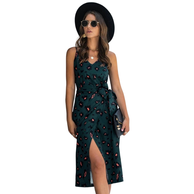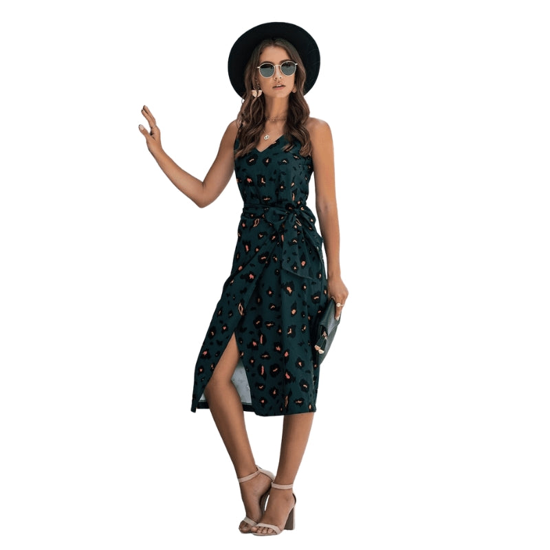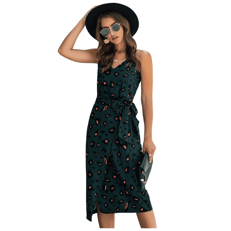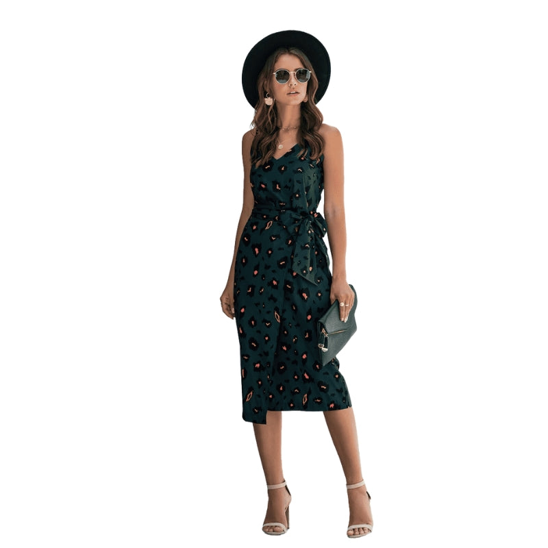 La robe Susanne, sans manches et à col en V, est dotée de fines bretelles spaghetti et d’une ceinture réglable à la taille pour une coupe flatteuse. Elle tombe avec élégance pour un style sans effort—parfaite pour les sorties décontractées, les réunions détendues ou pour être habillée avec des accessoires.
