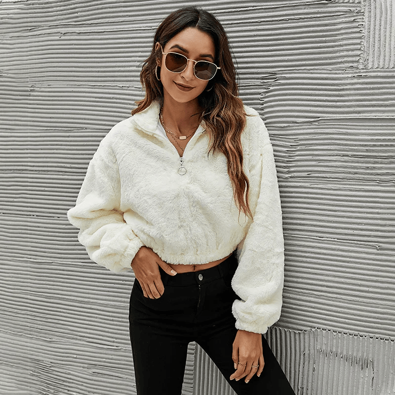 Cette veste présente une coupe ample avec manches longues et col rabattu. Les panneaux sont lisses avec des coutures soignées, et la fermeture éclair avant apporte une fonctionnalité simple.