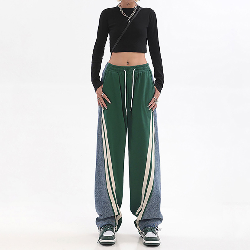 Ce pantalon présente une taille haute et une coupe jambe large. Le design inclut une taille confortable et des poches latérales intégrées à la structure, avec des surfaces lisses et des coutures régulières sur l’ensemble du vêtement.