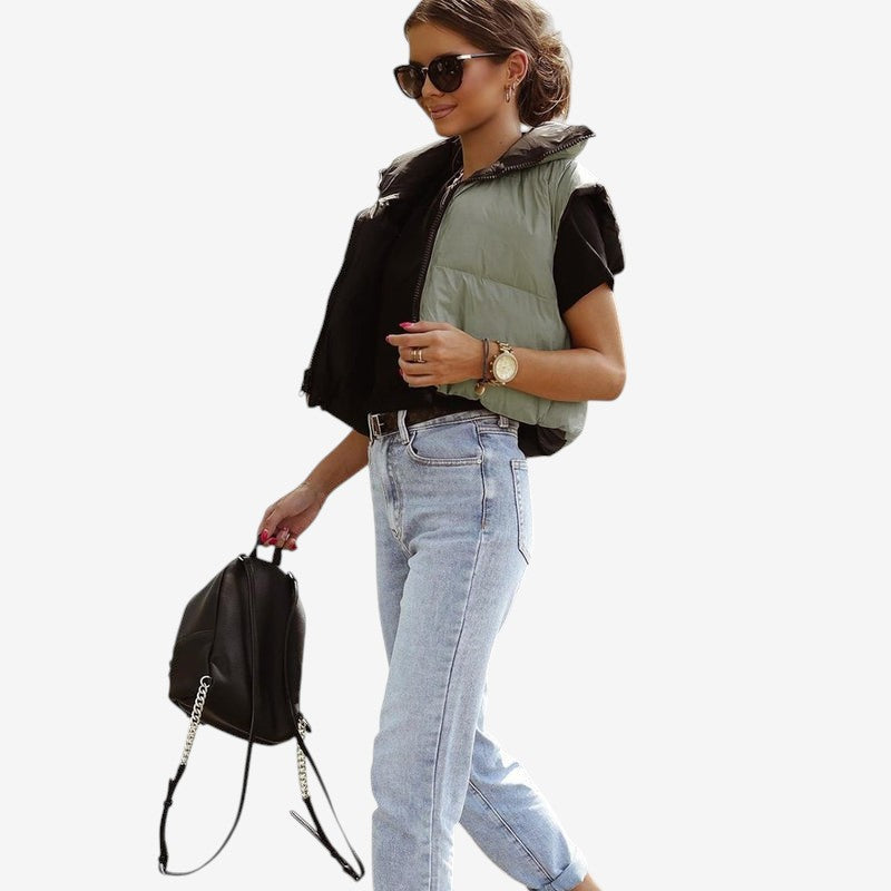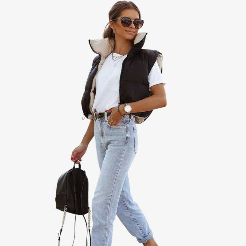 Emma – Veste Courte sans Manches à Col Montant et Fermeture Éclair