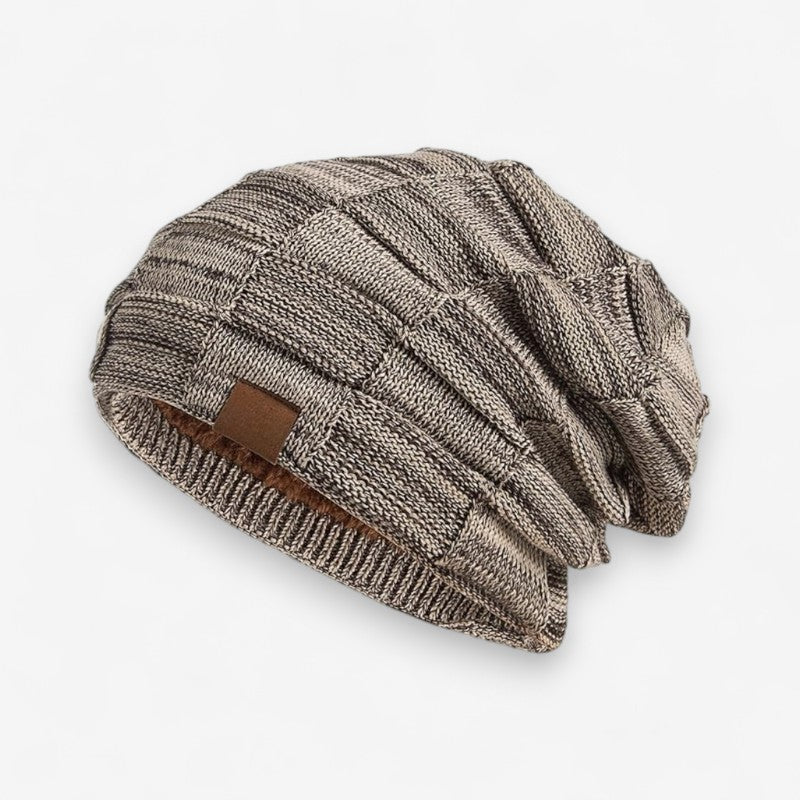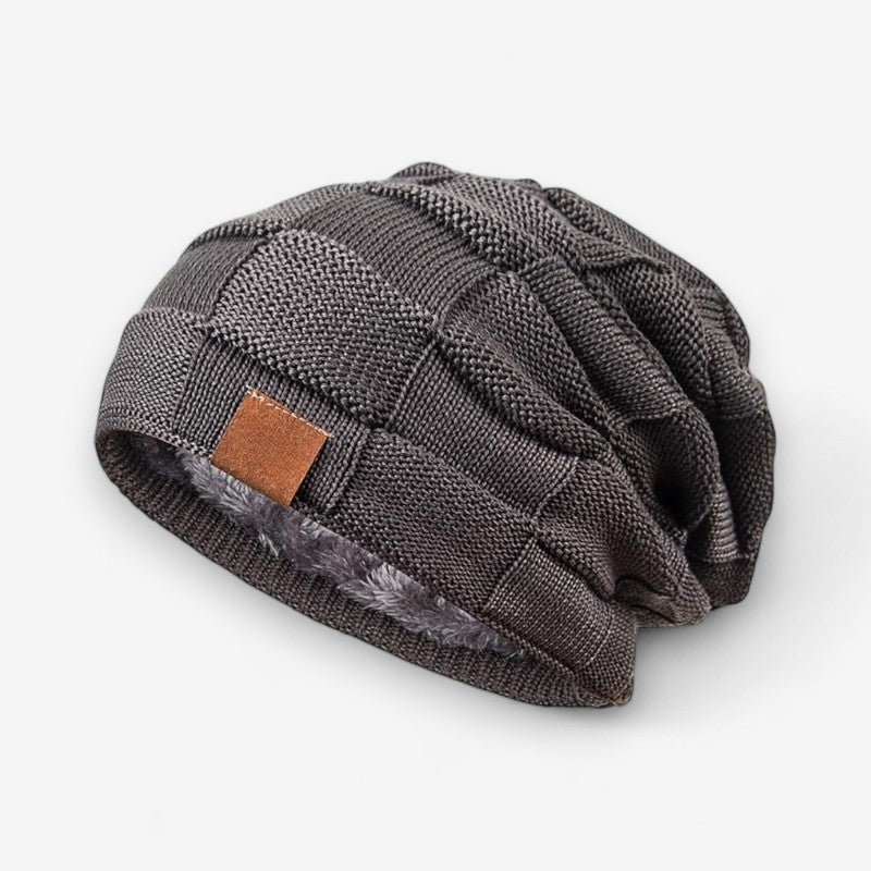Ce bonnet dispose d’une doublure intérieure en peluche et d’une forme souple. Les panneaux sont lisses et les bords comprennent des coutures soignées pour une forme définie.