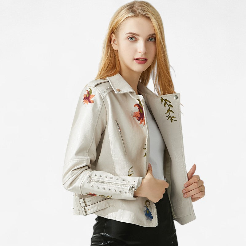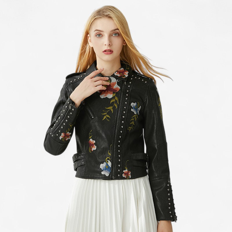 Hélène – Veste zippée brodée à rivets floraux