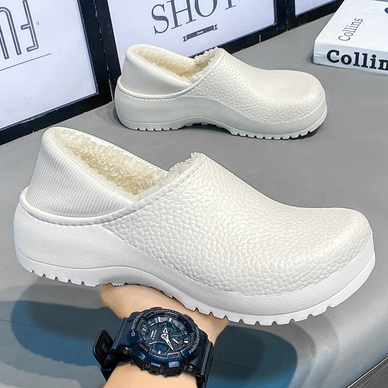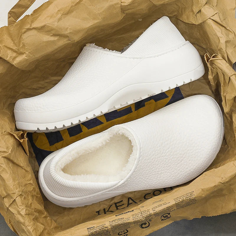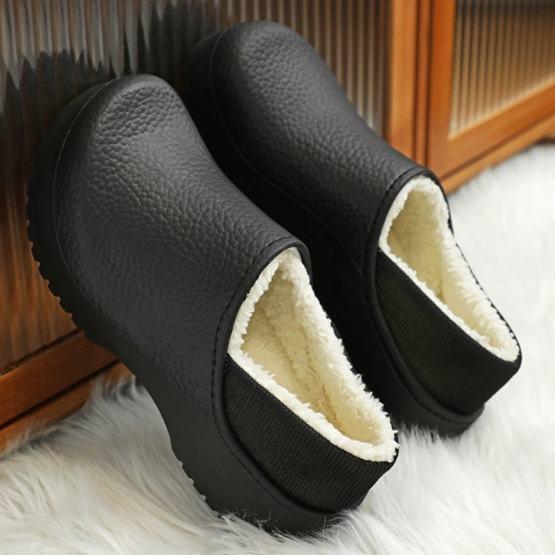 Ces chaussures présentent un bout rond et une semelle antidérapante. L’intérieur est doublé en polaire et les panneaux ont des coutures lisses le long des bords.