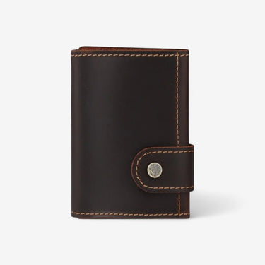 Le porte-cartes RFID Theodor présente un design structuré avec plusieurs compartiments internes pour les cartes d’identité et les cartes de crédit. Il a un profil mince et une base plate, ce qui le rend facile à glisser dans les poches.