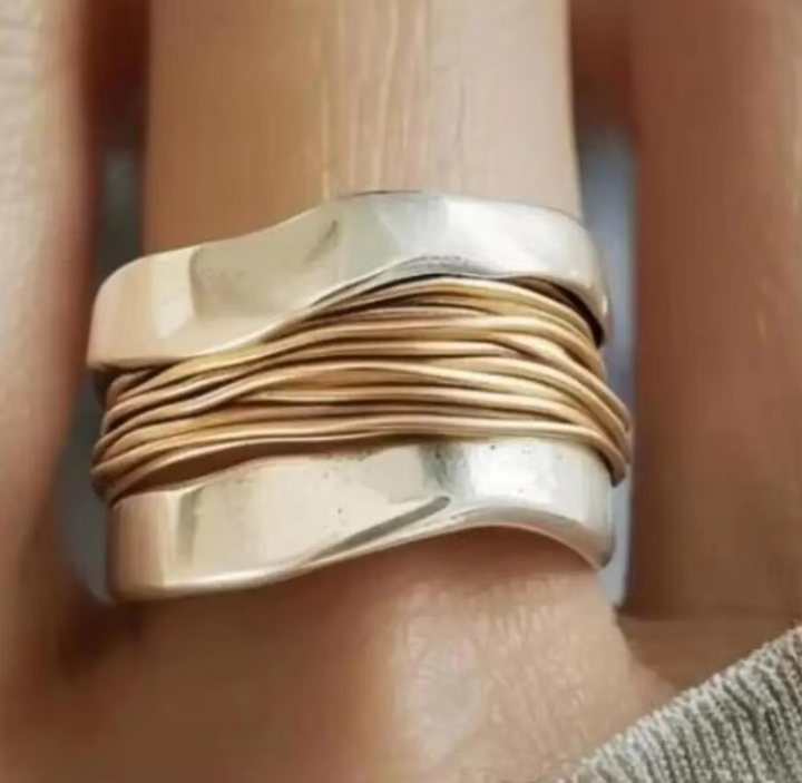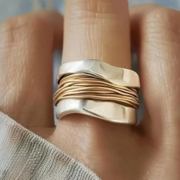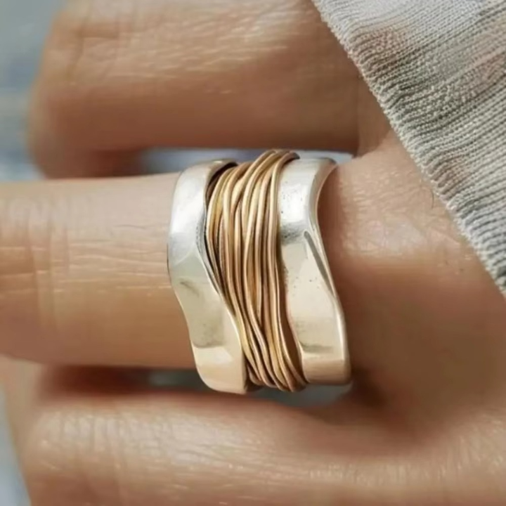 Aurela - Anillo trenzado bicolor con diseño circular impecable