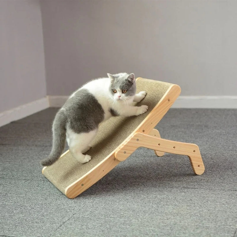 Griffoir réversible pour chat en carton avec cadre en bois massif. Facile à nettoyer et conçu pour s’adapter aux espaces compacts de votre maison.