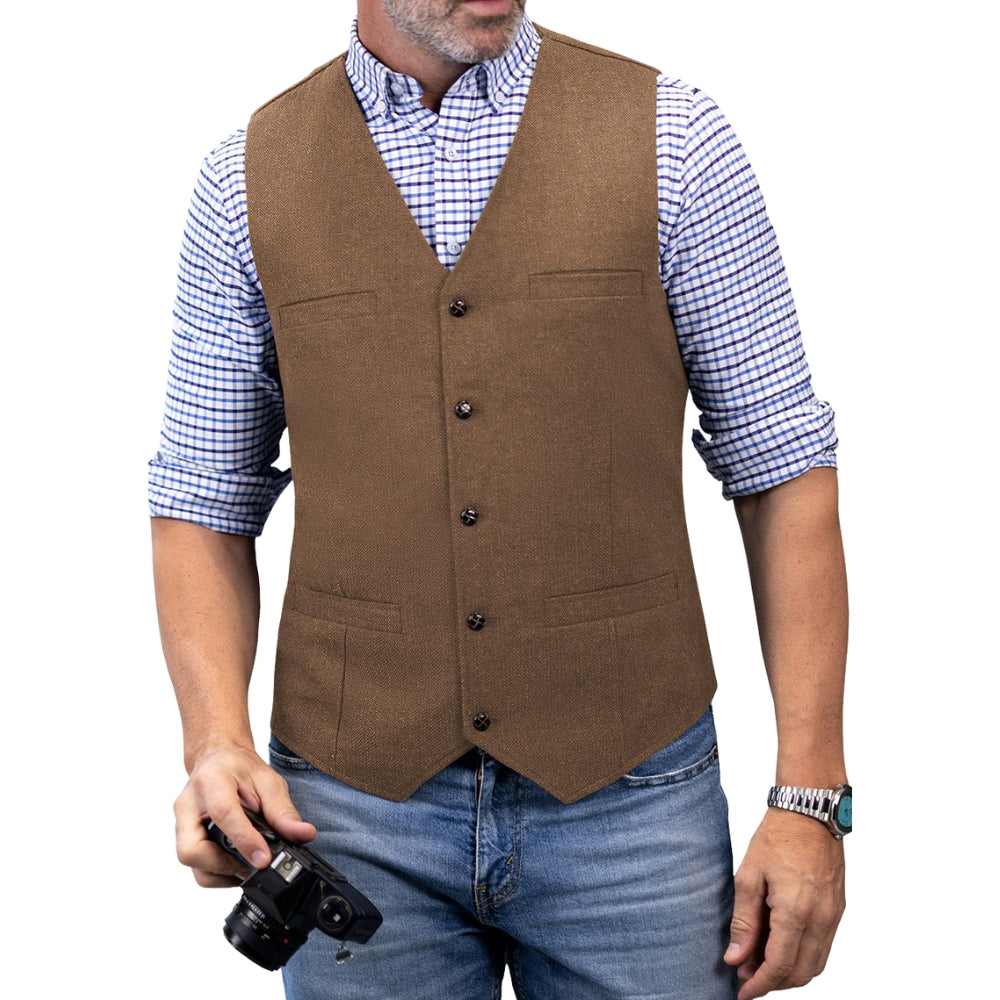 Joachim – Chaleco sin mangas con cuello en V, botones y bolsillos