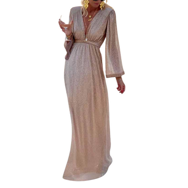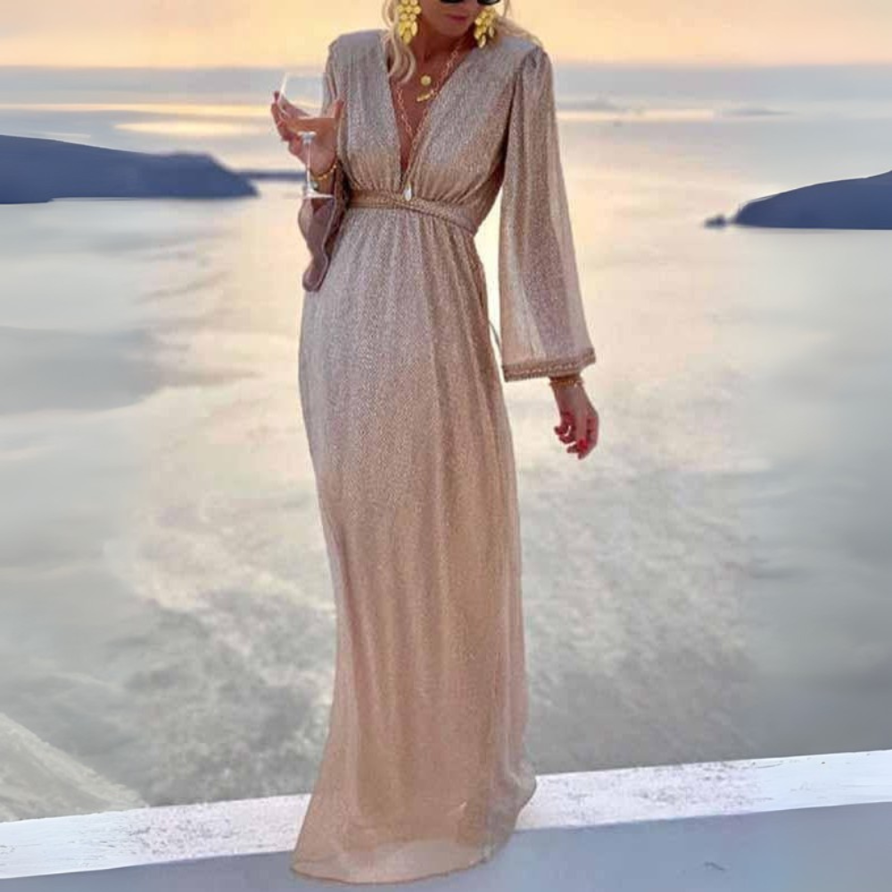 El vestido Lina combina un delicado escote en V con mangas largas y una textura satinada para un look refinado en cualquier ocasión. Perfecto para eventos, cenas o cuando quieras lucir un estilo más sofisticado.