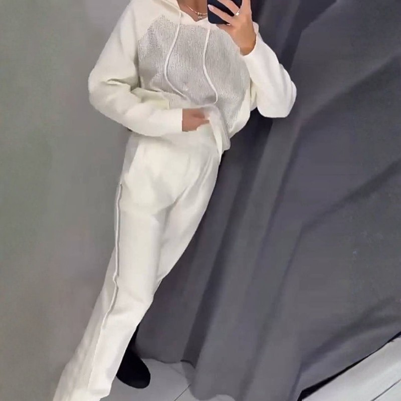 El conjunto Sarah de dos piezas combina una sudadera con capucha y pantalones a juego para un look deportivo y coordinado. Con bolsillos y mangas largas, es ideal para el día a día y para entrenar.