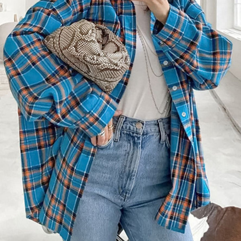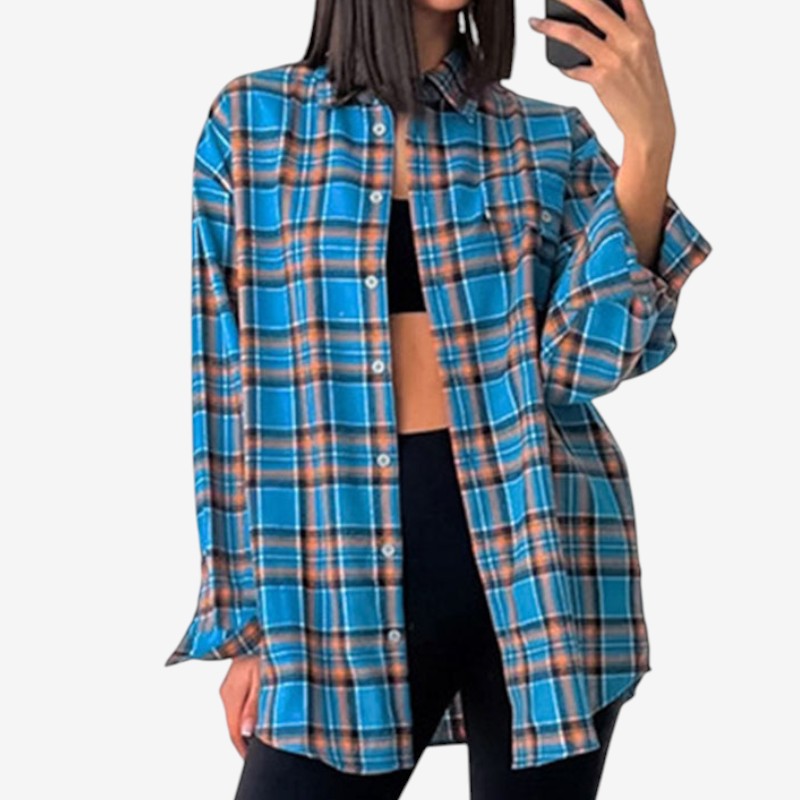 La camisa Scarlett presenta un clásico estampado de cuadros, cierre frontal con botones y cuello estructurado. Sus mangas largas y su corte entallado la convierten en una prenda versátil, perfecta tanto para ocasiones informales como para looks más formales.