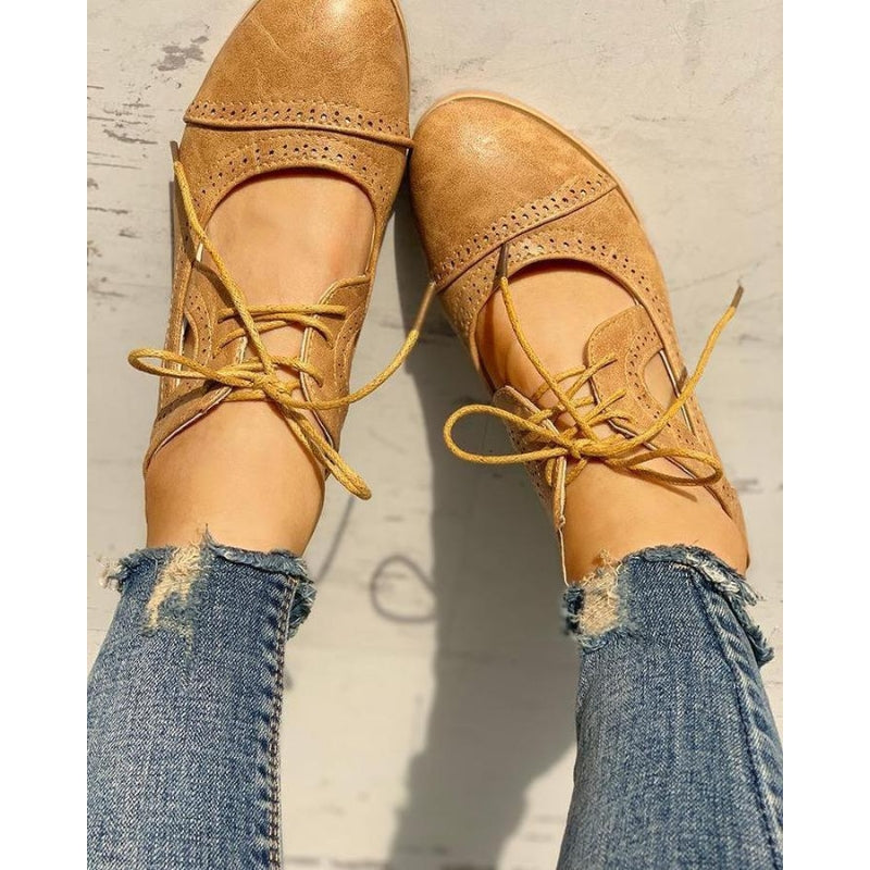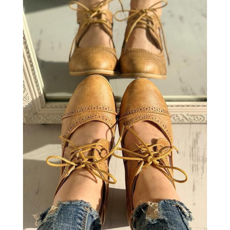 Queste scarpe presentano una moderna punta arrotondata e aperture laterali che aggiungono un tocco di originalità. L'allacciatura frontale garantisce una calzata perfetta e permette di adattare il look a proprio piacimento. La loro silhouette fonde con disinvoltura elementi classici e di tendenza. Versatili, sono adatte sia per l'uso quotidiano che per le occasioni speciali.