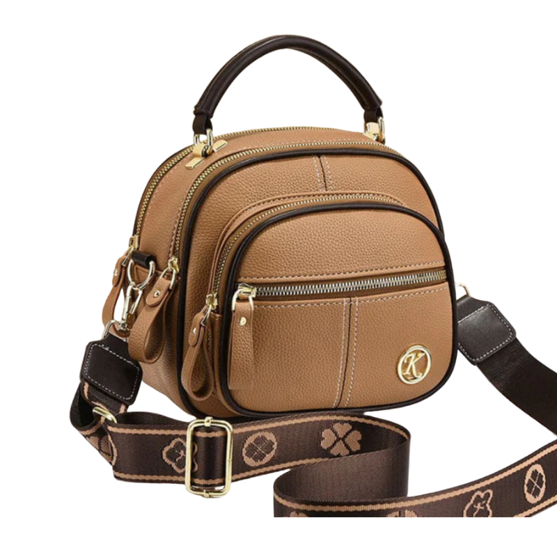 Nocciola – Borsa con pratica tracolla e tasche con cerniera