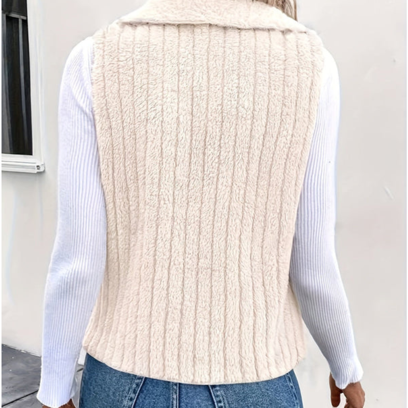 Il gilet Audrey presenta un colletto a punta e una silhouette aderente, che lo rendono perfetto da indossare sopra abiti casual. Le sue linee pulite aggiungono un tocco raffinato e versatile a qualsiasi guardaroba.