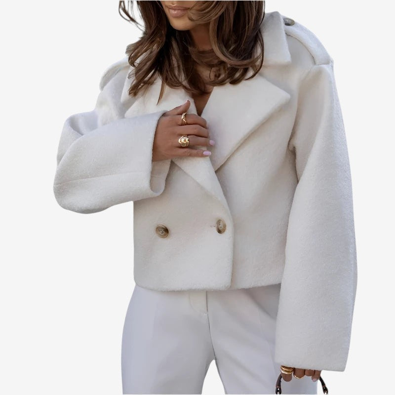 Il cappotto Charlotte presenta maniche lunghe, colletto a lancia e chiusura con bottoni, che gli conferiscono un look elegante e raffinato. La sua vestibilità comoda crea una silhouette ideale per occasioni casual o semi-formali.