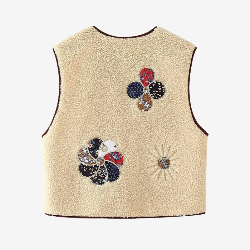 La giacca Clara presenta uno scollo a V e un design senza maniche per un facile utilizzo a strati. Le tasche laterali offrono praticità, mentre la stampa aggiunge un tocco di stile agli outfit casual.