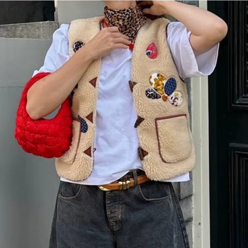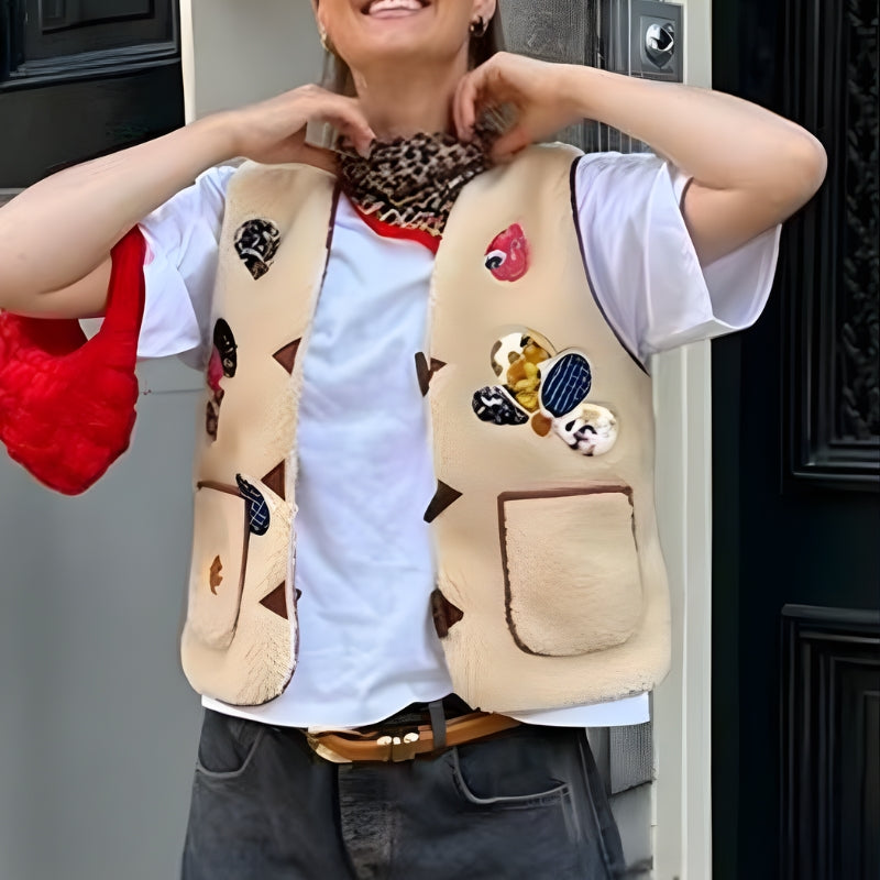 Clara – Giacca stampata senza maniche con scollo a V e tasche