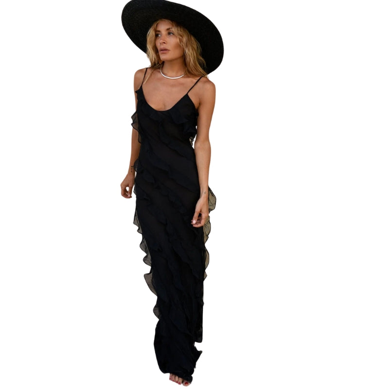 L'abito Danuta si distingue per le sue delicate spalline sottili e la schiena scoperta, offrendo una silhouette moderna ed elegante. Realizzato in chiffon leggero, garantisce comfort e libertà di movimento ottimali, ideale per serate, eventi o uscite informali.