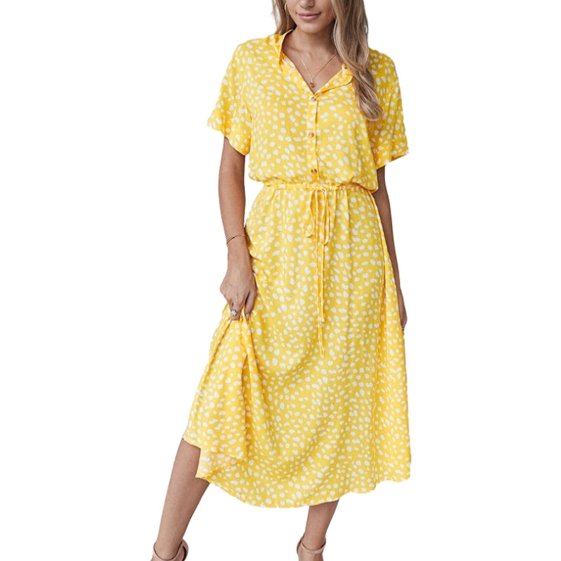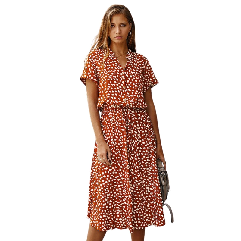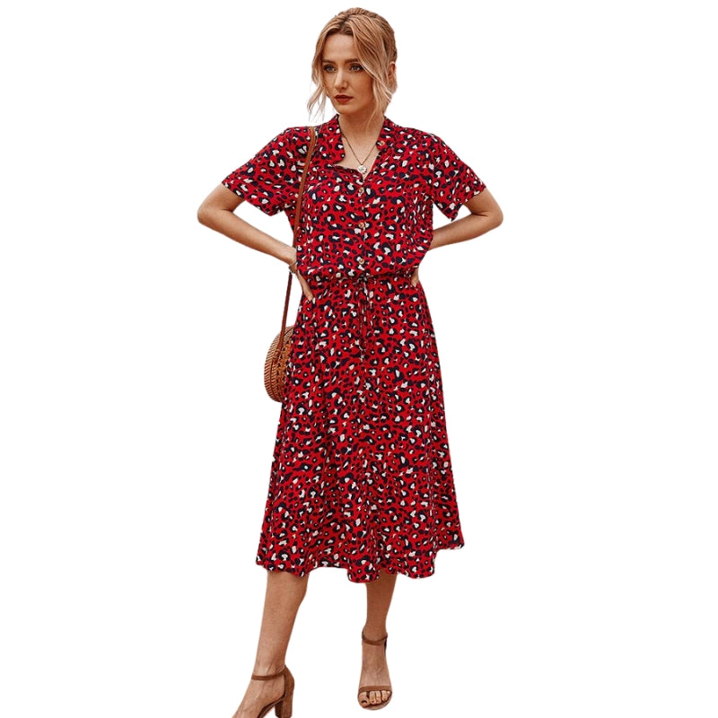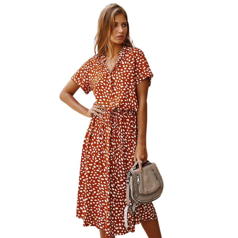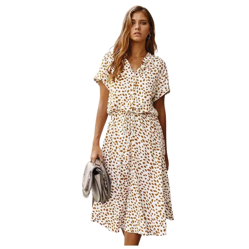 Delia – Abito stampato a maniche corte con vita regolabile