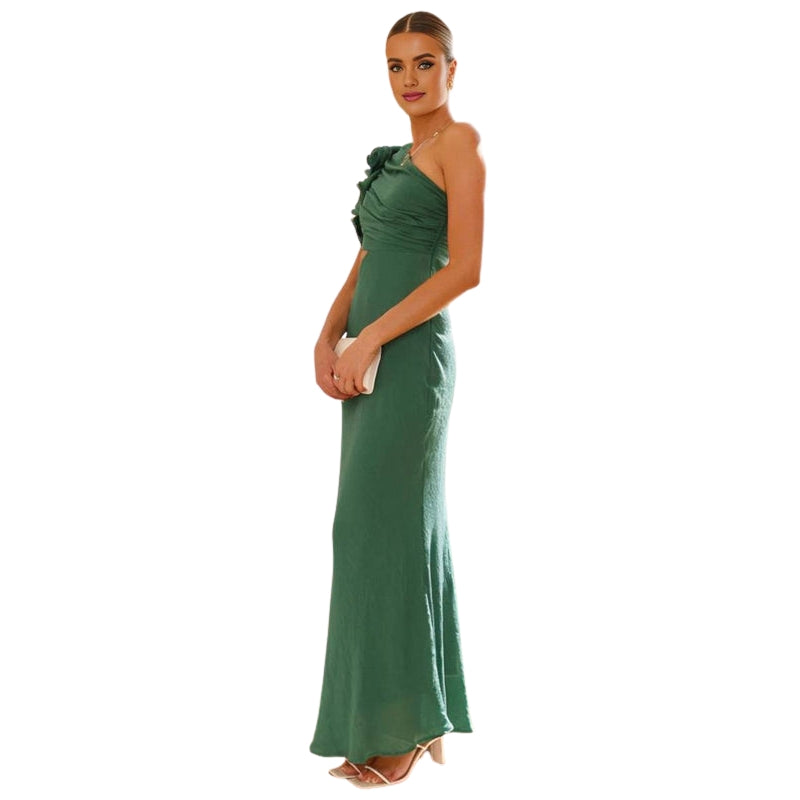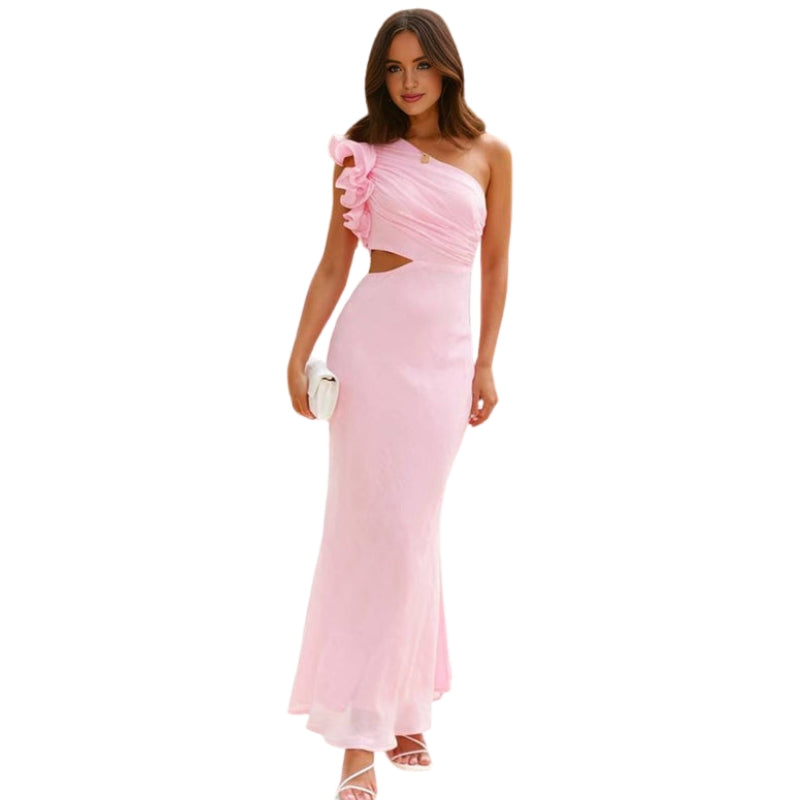 L'abito lungo monospalla Elena presenta un elegante dettaglio cut-out. Pensato per un uso versatile, coniuga eleganza e comfort, rendendolo perfetto per diverse occasioni.
