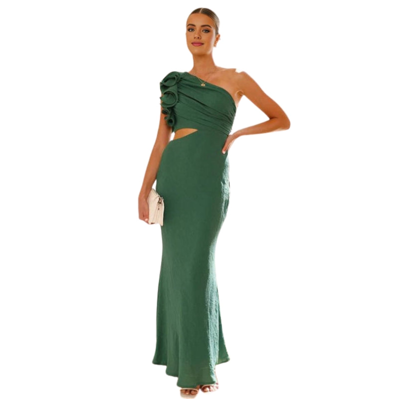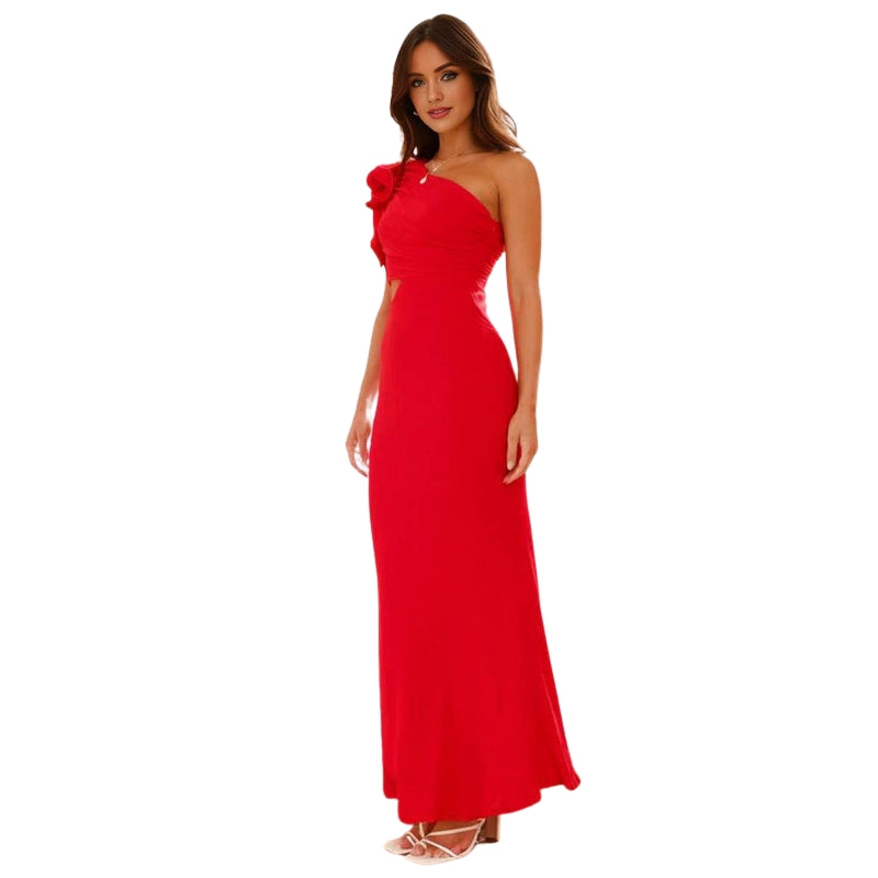 Elena – Abito lungo monospalla asimmetrico con ritaglio