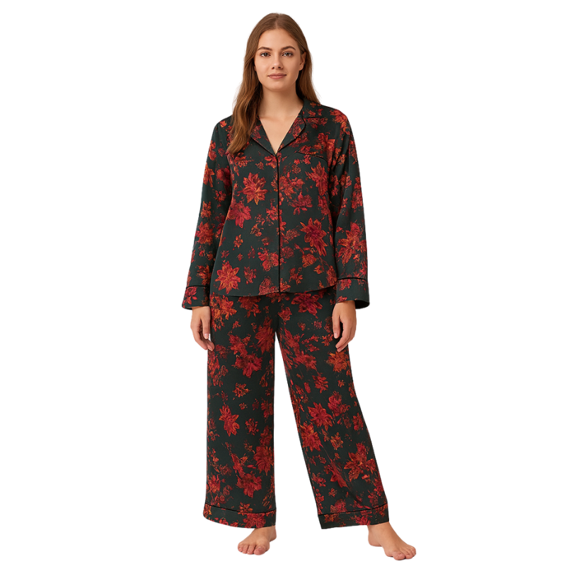 Elizabeth - Pigiama a maniche lunghe con scollo a V floreale