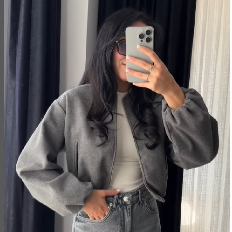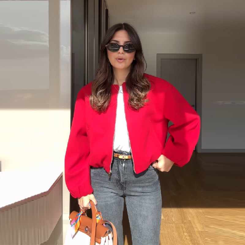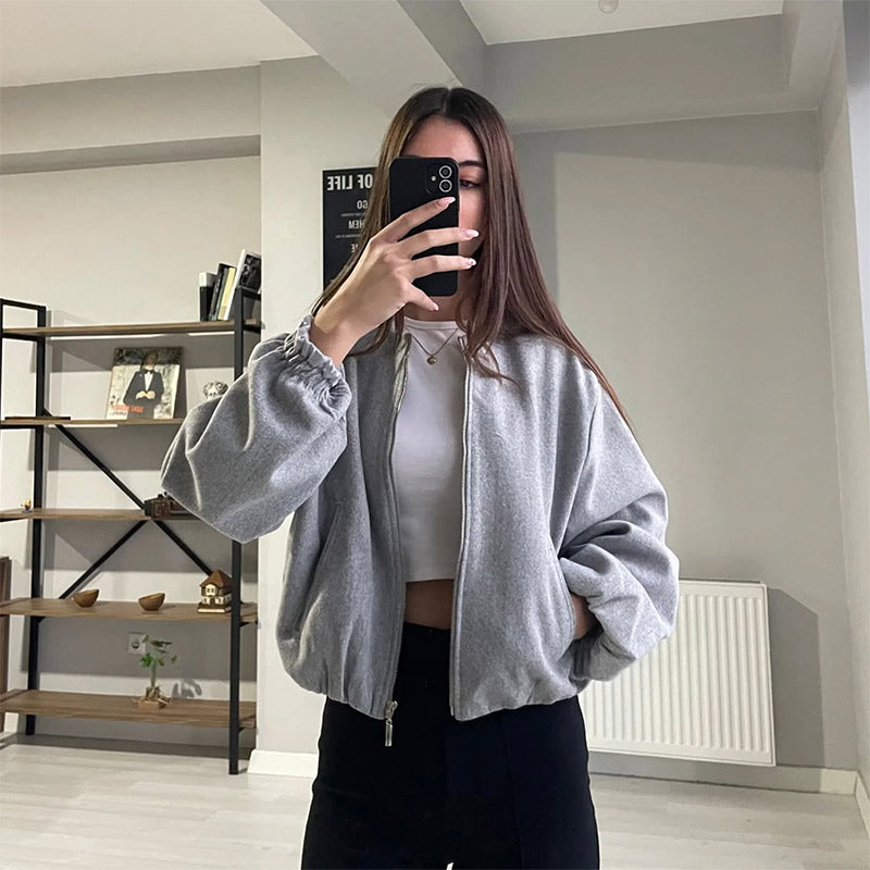 Il bomber Emily presenta un classico girocollo e maniche lunghe, oltre a tasche con zip per un look pratico ed elegante. Ideale per le uscite informali e per l'uso quotidiano.