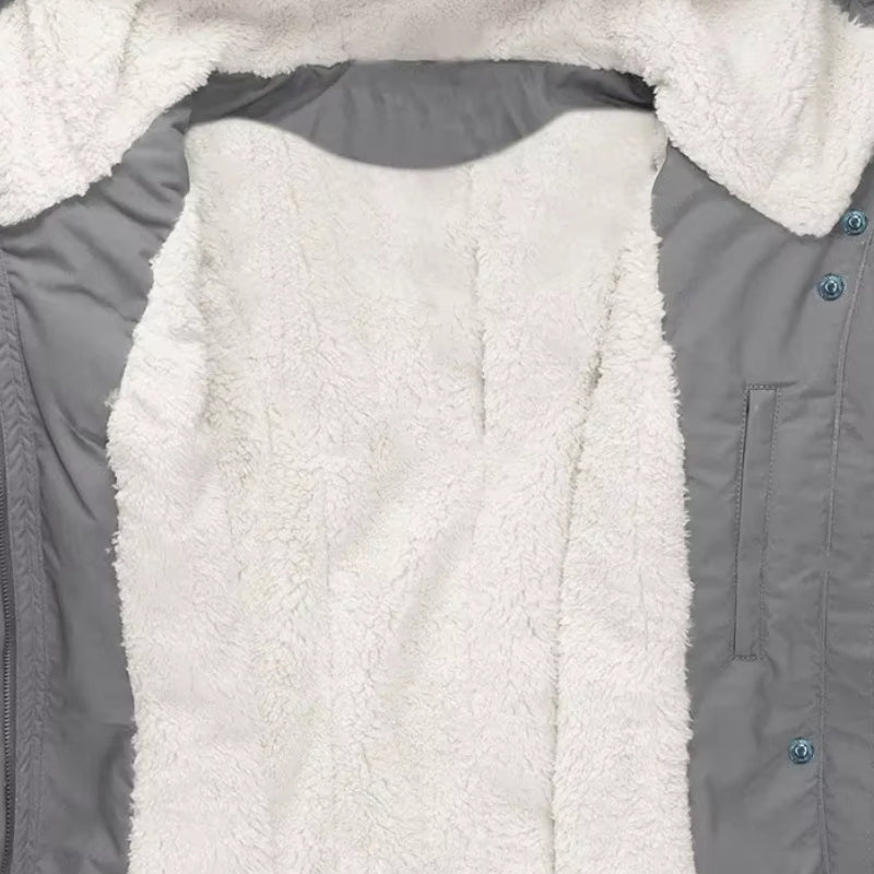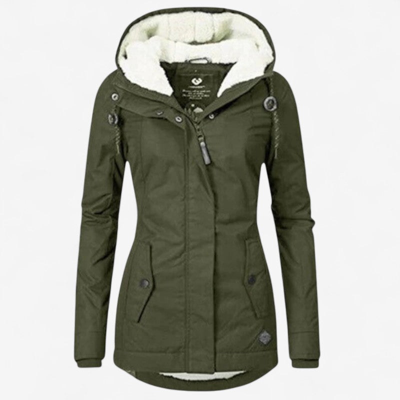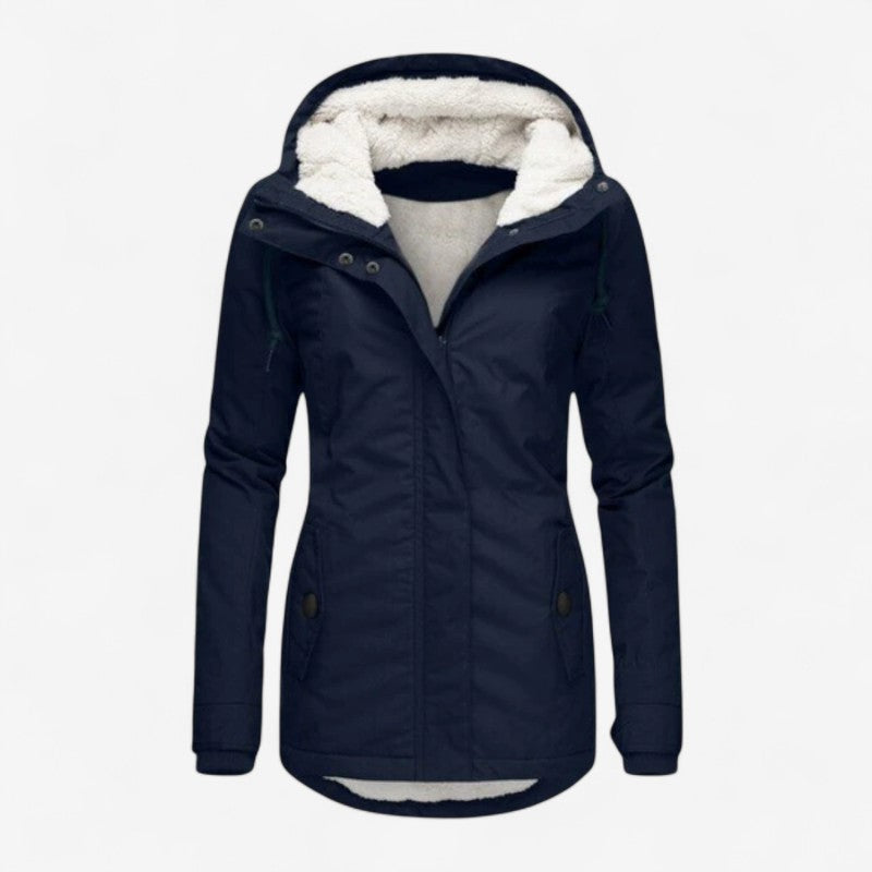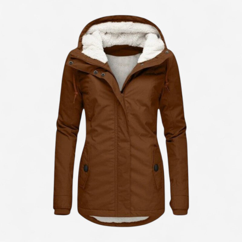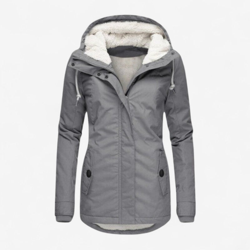 Il cappotto foderato in pile Esmee è dotato di cappuccio e maniche lunghe per un maggiore calore. La chiusura con cerniera e le numerose tasche lo rendono pratico per l'uso quotidiano o per le attività all'aperto, garantendo comfort nelle giornate più fresche.