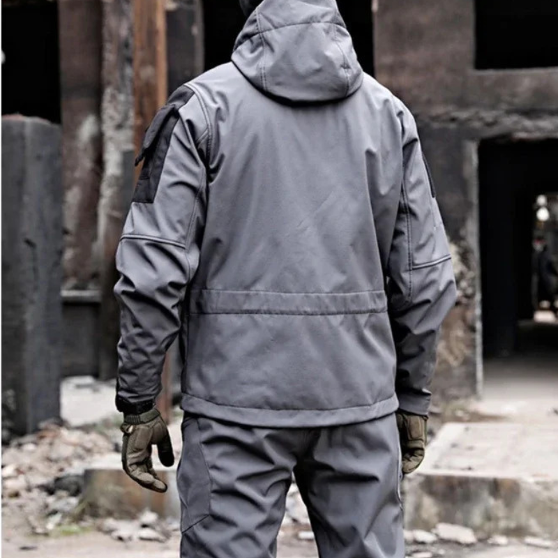 Jason è un versatile set di pantaloni cargo pensato per la praticità quotidiana. Dotato di numerose tasche per una maggiore praticità e di un cappuccio regolabile per una maggiore protezione, questo set è perfetto per le attività all'aperto o per un look casual.