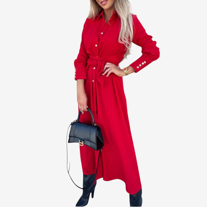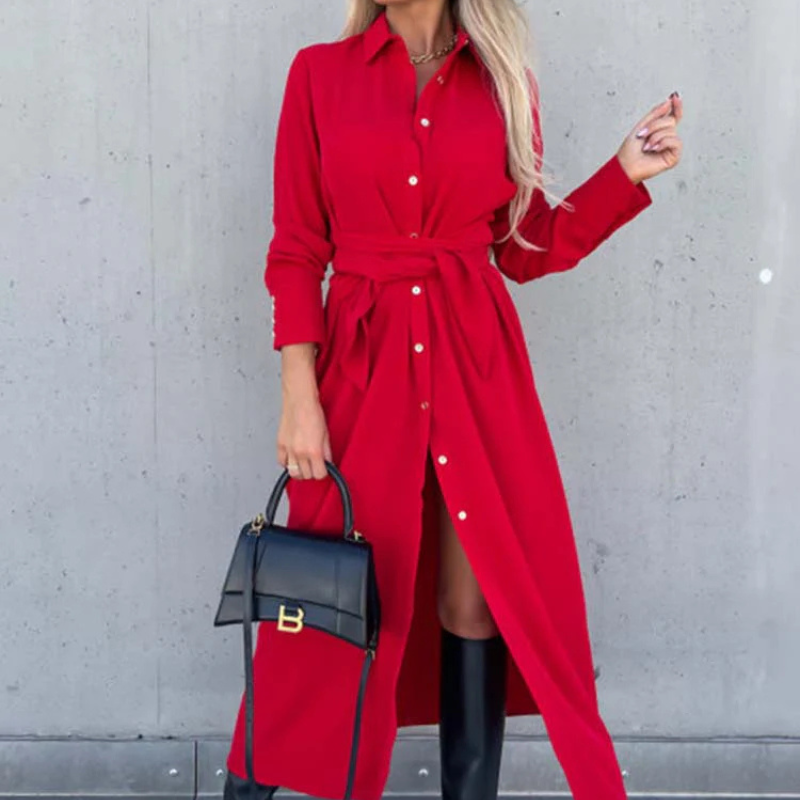 Johanna – Abito a maniche lunghe con cintura regolabile e bottoni