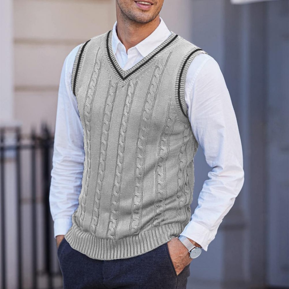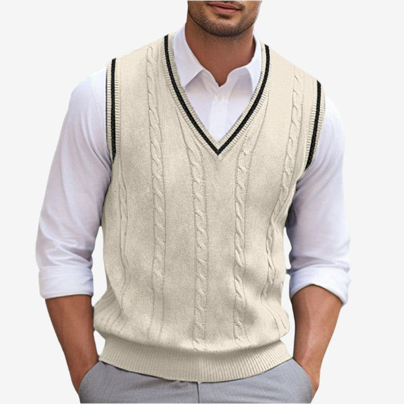 John – Pull sans manches à col en V tricoté slim longueur moyenne