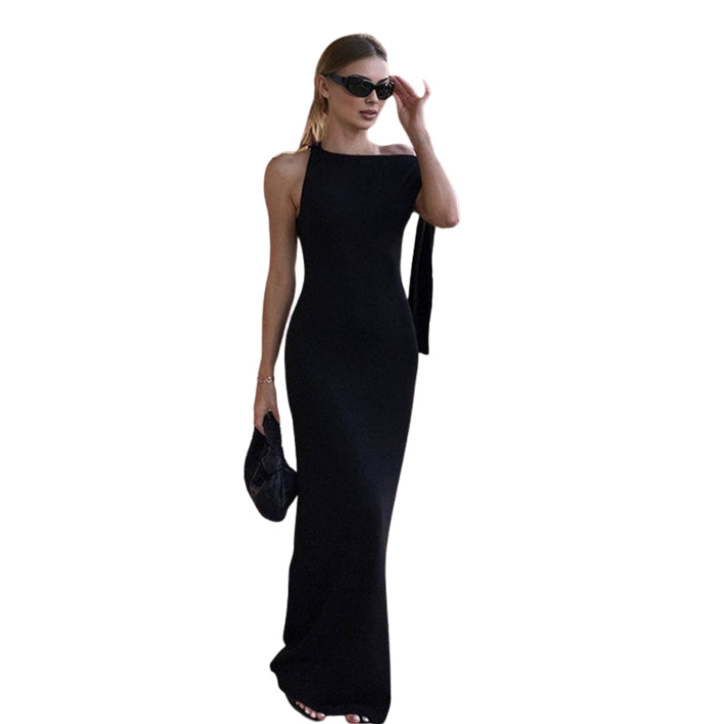 Julia – Abito lungo monospalla asimmetrico con vestibilità slim