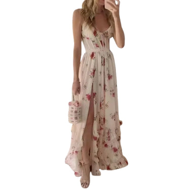 Julia – Abito lungo floreale senza maniche con orlo arricciato