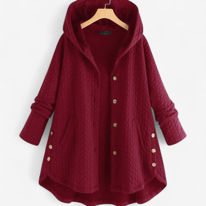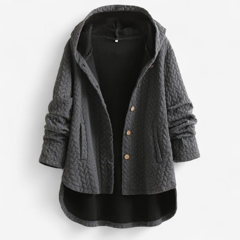 Julia – Giacca con cappuccio di media lunghezza, tasche e bottoni