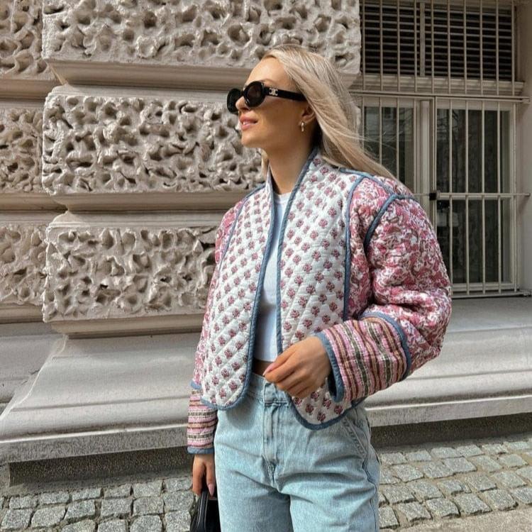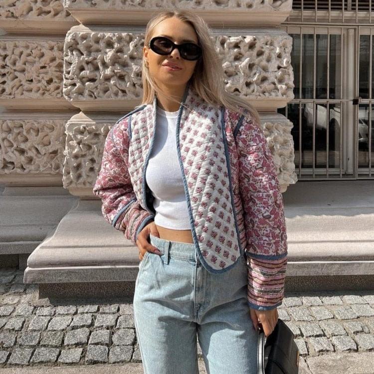 La giacca a maniche lunghe Lisa con stampa double-face dona un lussuoso look vintage al tuo guardaroba, rendendola un capo indispensabile per la donna attenta alla moda. Realizzata in un tessuto pregiato e morbido, questa giacca ti avvolge in un comfort senza pari, permettendoti di godere della sua morbidezza sulla pelle. La sua vestibilità rilassata consente libertà di movimento, rendendola ideale per l'uso quotidiano.