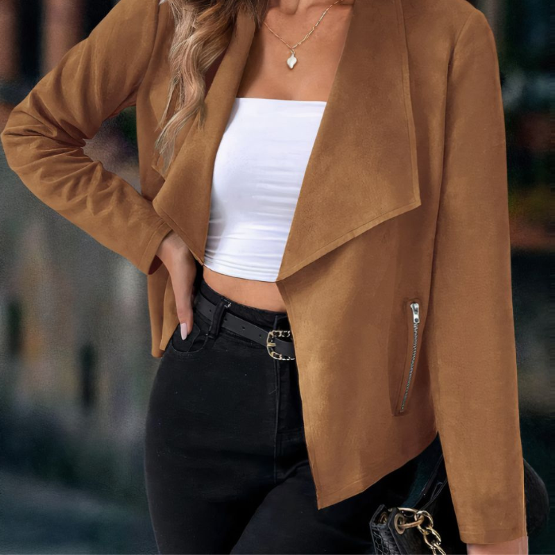 Lori – Blazer a maniche lunghe con collo a lancia e tasche con cerniera