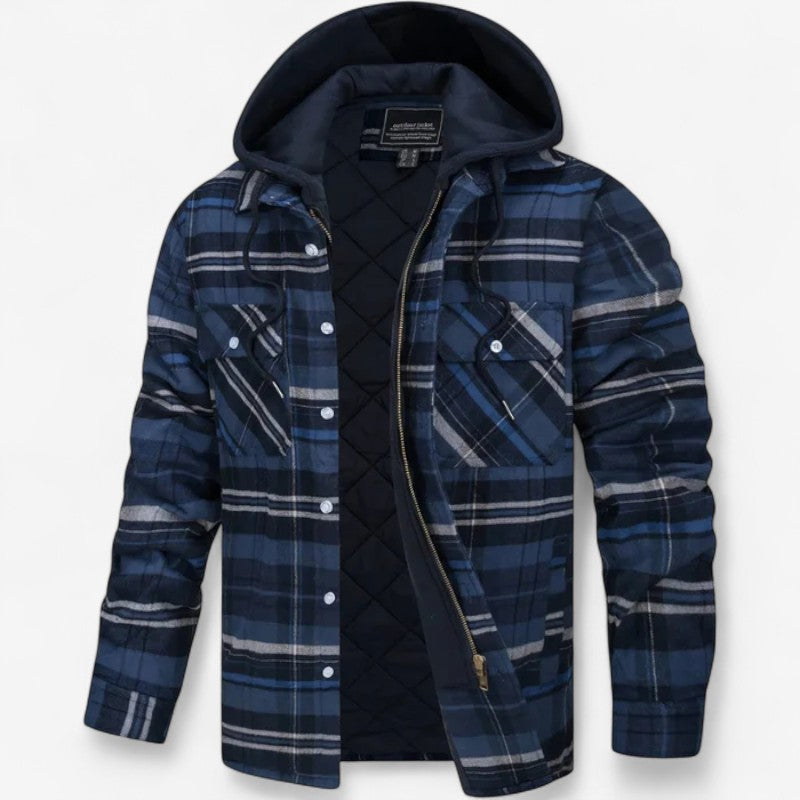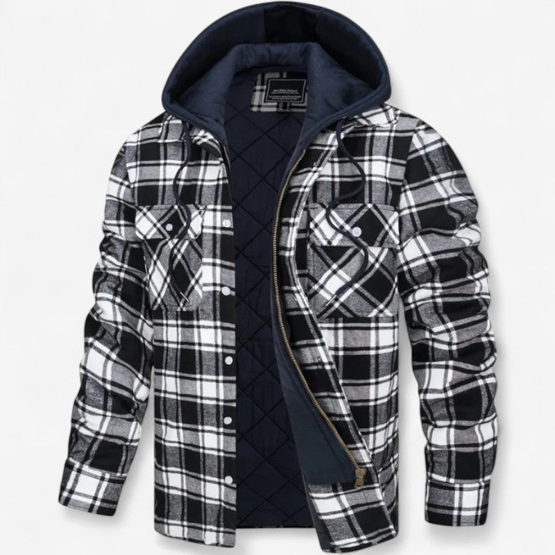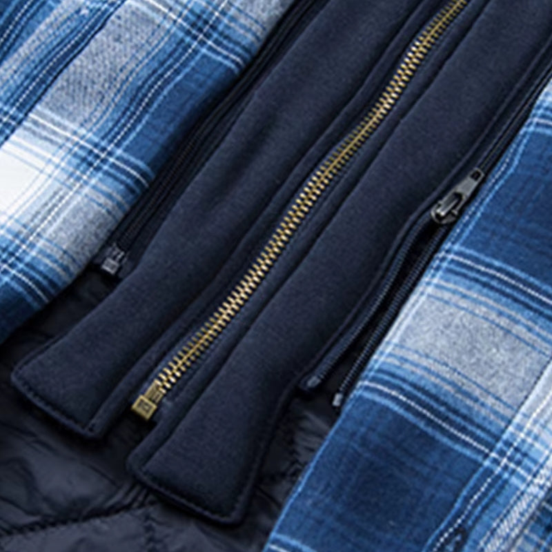 Questa giacca con cappuccio a maniche lunghe presenta una fantasia scozzese e tasche sul petto con cerniera. Il suo design leggero la rende facile da indossare a strati, e il cappuccio offre una protezione extra. Resistente e versatile, è ideale per l'uso quotidiano.