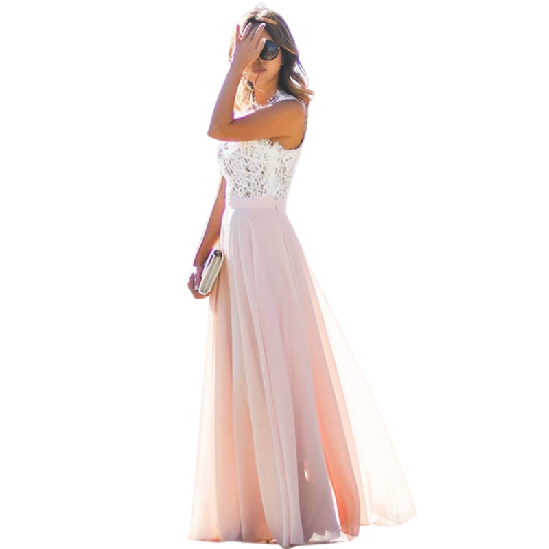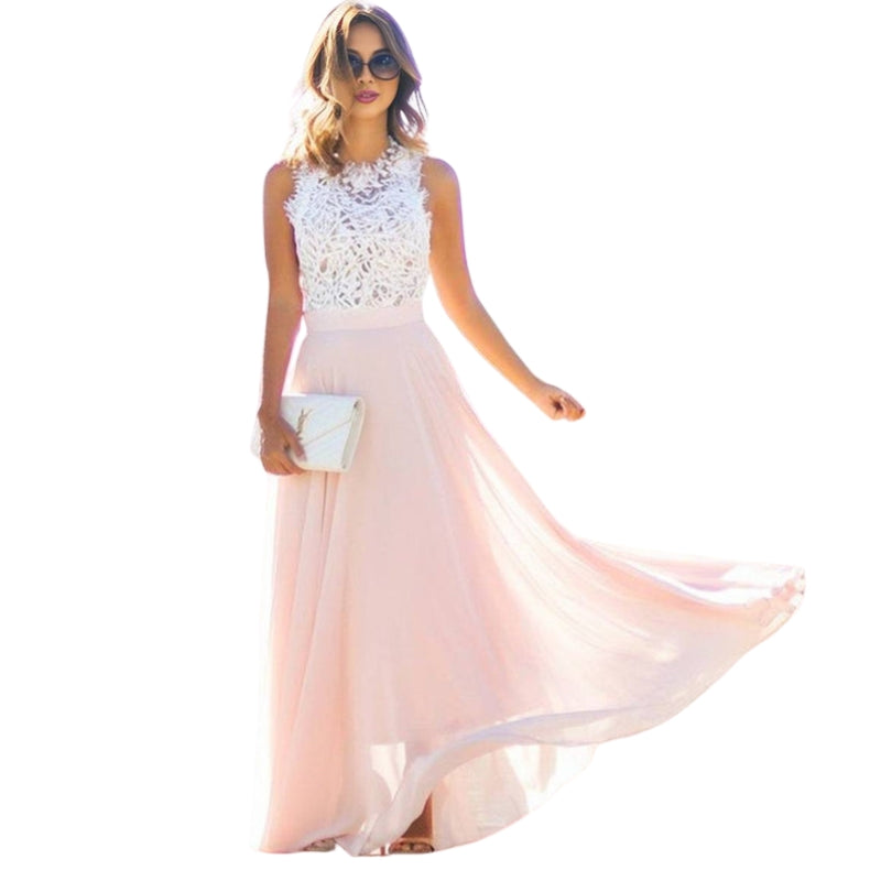 Luisa – Abito lungo in pizzo fluido senza maniche con scollo tondo
