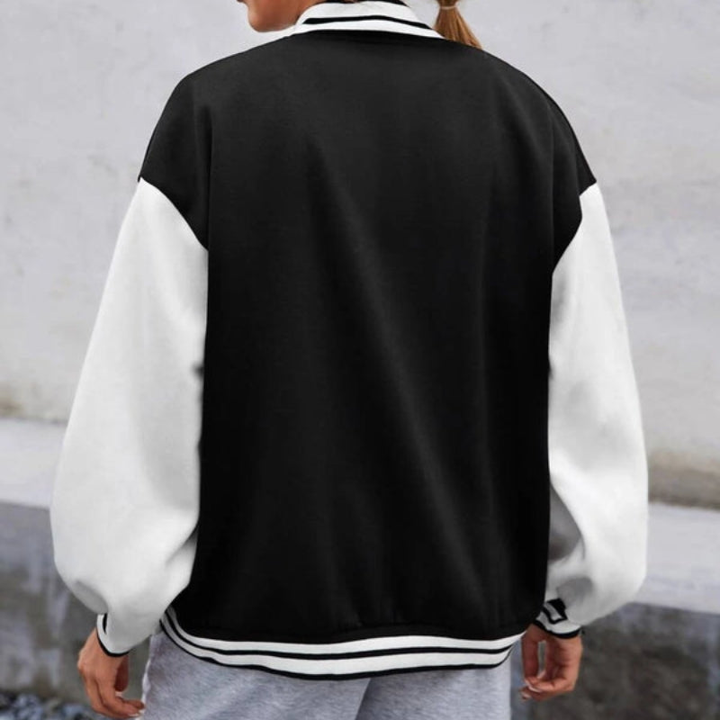 Il bomber Luna presenta una vestibilità comoda, un design stampato e una chiusura con bottoni per un look casual e confortevole. La sua struttura leggera lo rende perfetto per vestirsi a strati o per le giornate più fresche.