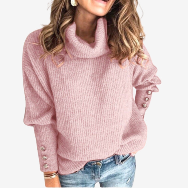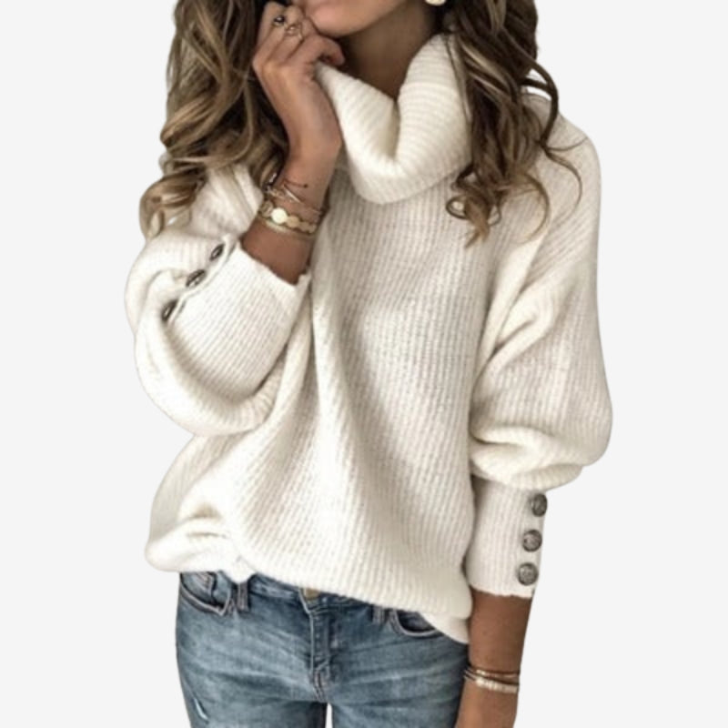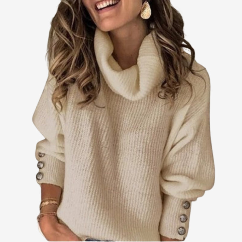 Maren – Maglione a collo alto con bottoni e maniche lunghe