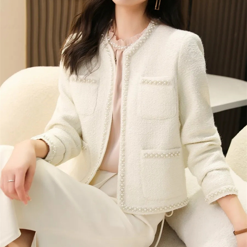 Il cappotto Mila presenta scollo rotondo, maniche lunghe e numerose tasche, combinando un look pulito con dettagli pratici. Progettato per un uso versatile, unisce praticità e stile, mantenendo una silhouette strutturata.