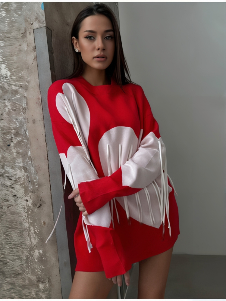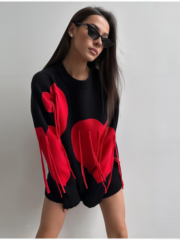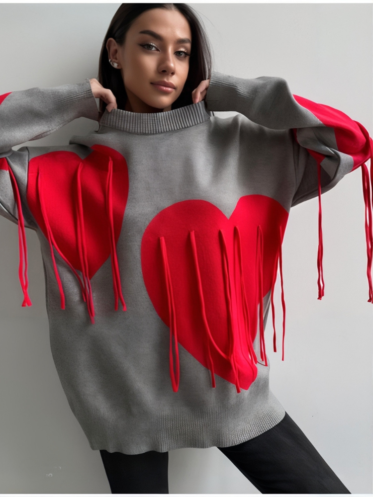 Neva - Maglione classico a maniche lunghe con stampa a cuore