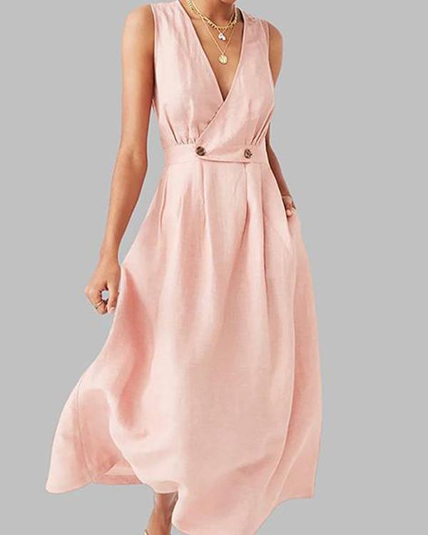 Nevaeh - Elegante abito con scollo a V e pieghe senza tempo
