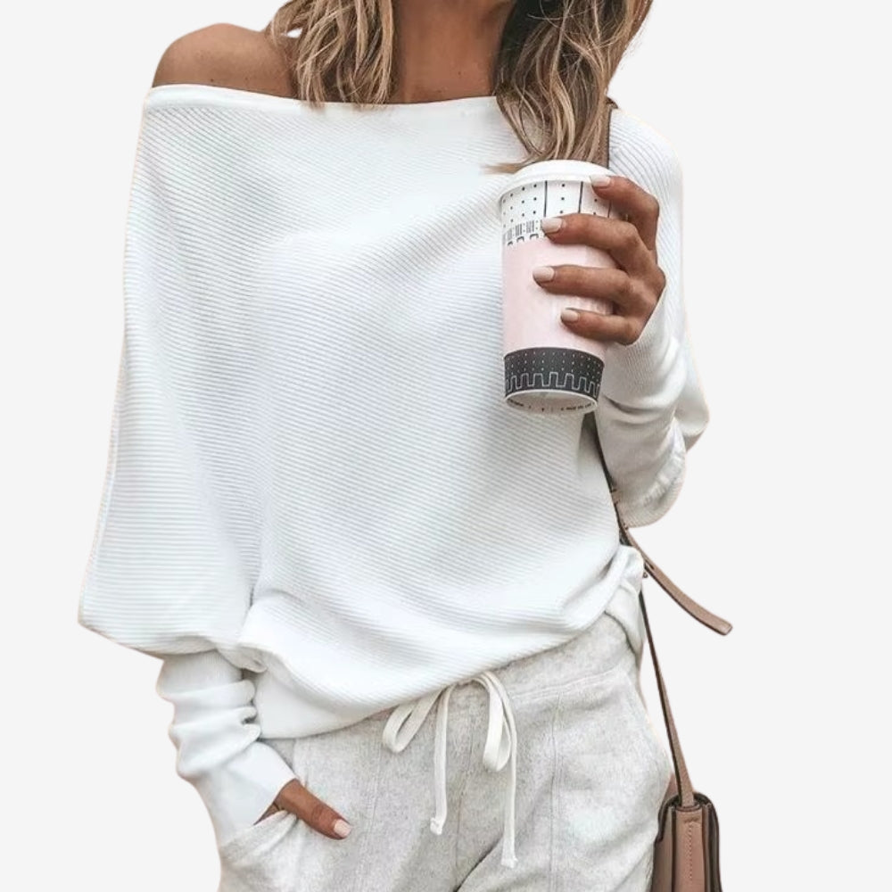 Il maglione Noorine con spalle scoperte offre una vestibilità comoda e ampia per il comfort quotidiano. Le maniche lunghe offrono una buona copertura, mentre lo stile con spalle scoperte aggiunge un tocco discreto e moderno.