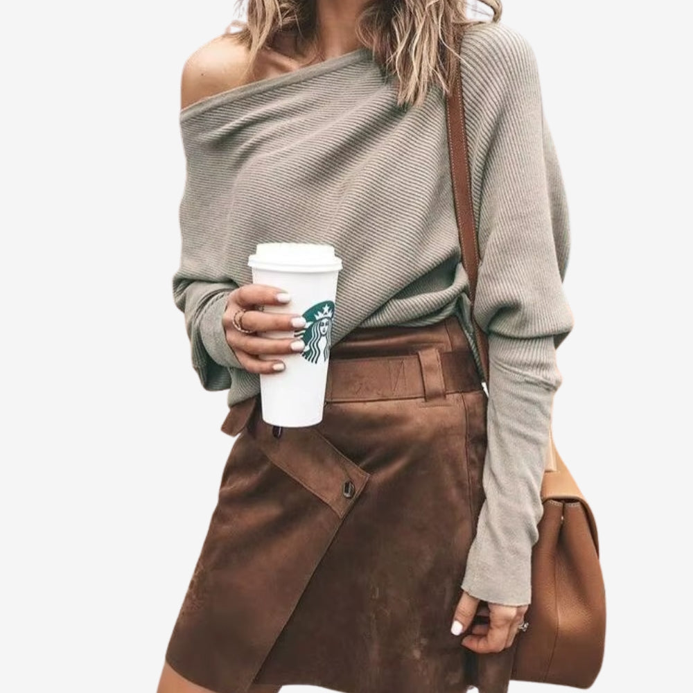 - Design: Maglione a maniche lunghe con spalle scoperte